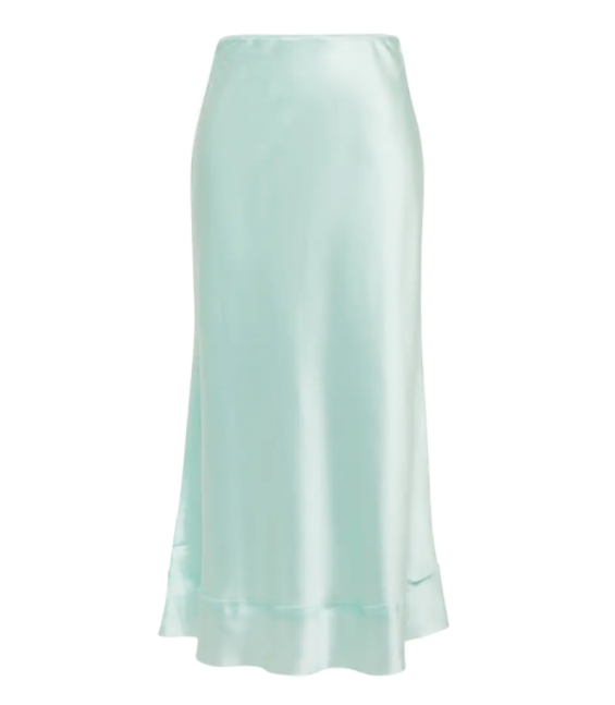 The Lee Mathews Stella slip midi skirt epitomizes effortless elegance. It's made of lustrous pastel blue silk satin exclusively for Mytheresa, with a high-rise waist that lengthens the legs. Wear it with the camisole that goes with it.